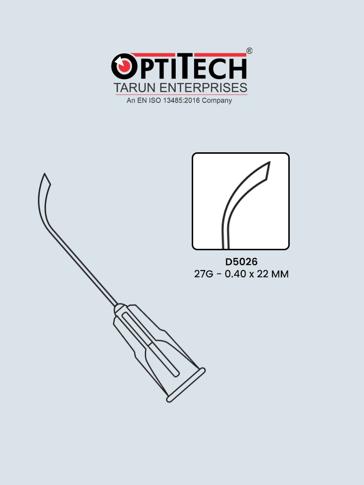 The curved design allows for precise maneuverability, while the flat-end tip ensures smooth insertion and controlled fluid delivery for effective hydrodissection. Made from high-quality medical-grade stainless steel, this ophthalmic disposable cannula is sterile and single-use, minimizing the risk of infection and ensuring patient safety. It is specifically designed to enhance phacoemulsification procedures, providing surgeons with an efficient and reliable tool for cataract removal.